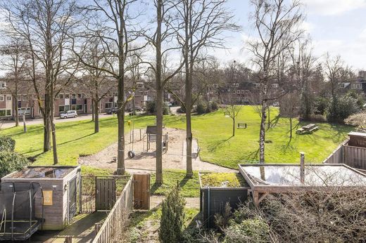 Aan de achterzijde ligt de maar liefst ruim 12 meter diepe achtertuin. Deze is georiënteerd op het zuiden. Je ervaart hier vanwege de ligging aan de grote groenvoorziening ontzettend veel vrijheid. In de tuin staat een houten schuur en er is een achterom.